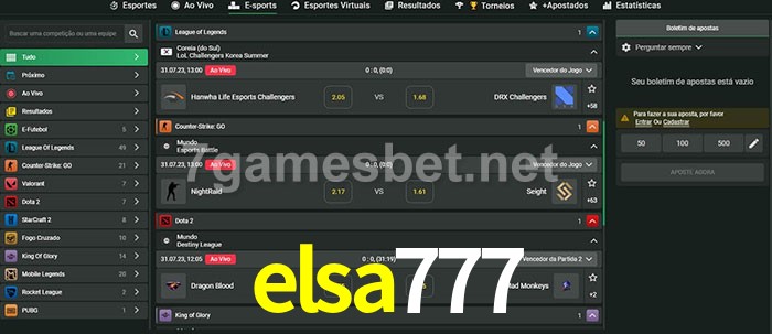 O elsa777 oferece uma grande seleção de opções de apostas em e-sports com probabilidades competitivas